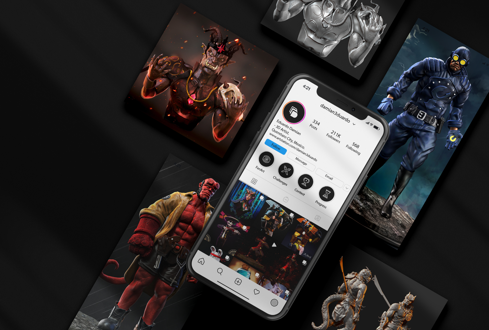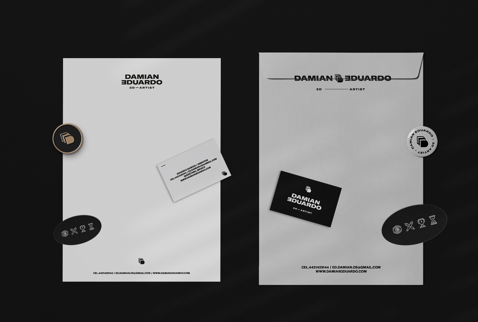Identidad visual para Damian3duardo. Artista visual 3D, especializado en la elboración de personajes y esculturas 3D.